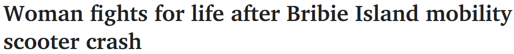 周三上午9点,应急部门接到报案称Bellara区Sunderland Dr发生车祸。一名骑乘代步车的女子伤势危及生命,正在接受救治。