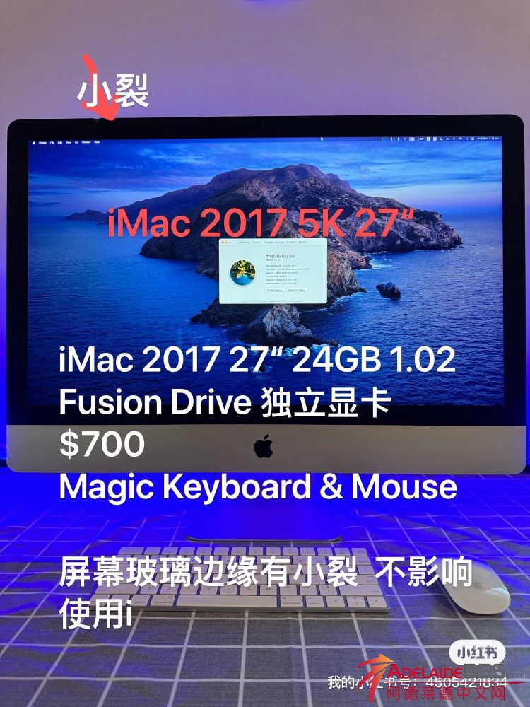 iMac 27寸 2017 retina 5k 24gb Ram 1T Fusion Drive 带apple 键盘鼠标 v: 1020971045