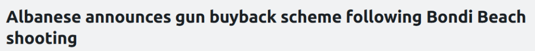 • 澳政府推全国枪支回购计划,回应Bondi严重恐袭并加强反犹立法!