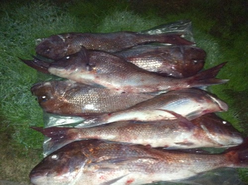 | 是参加fishing charter去远海钓的吧?不然很难钓到这么多大的snapper呀。我去近海钓,碰上过snapper鱼群, 钓上不少snapper, 但都刚好在尺寸下一点点,只好全扔回去了 |