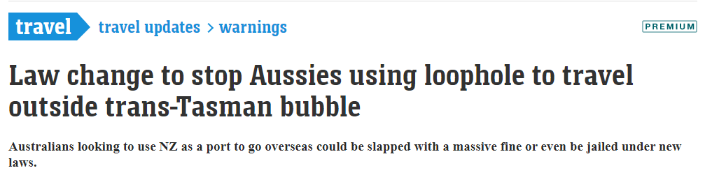 标题: 堵上漏洞!澳洲出台法律禁止澳人从新西兰去他国旅行!违者或将被罚6万澳元!