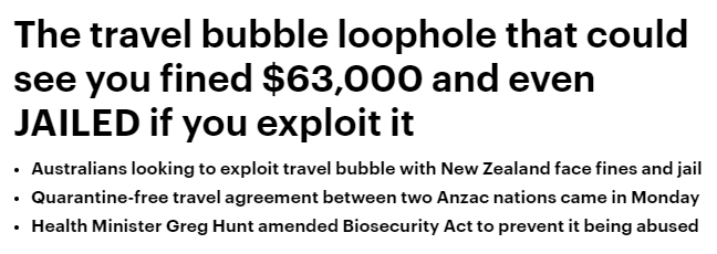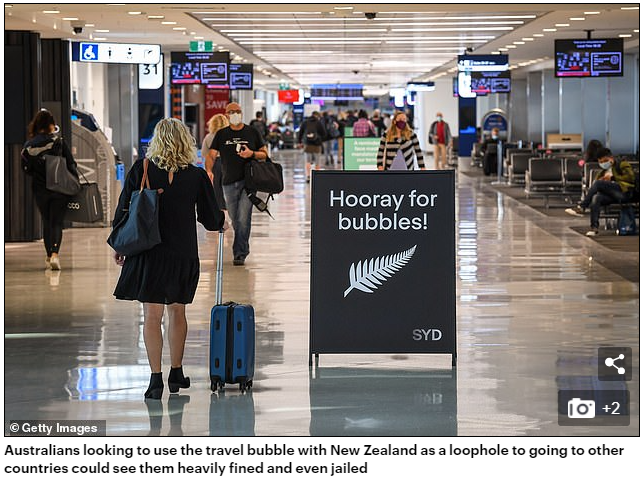 一些人很快指出,新西兰可能被用作澳人进一步出国旅行的港口,因为新西兰没有像澳大利亚那样的法律,即禁止没有豁免权的海外旅行。