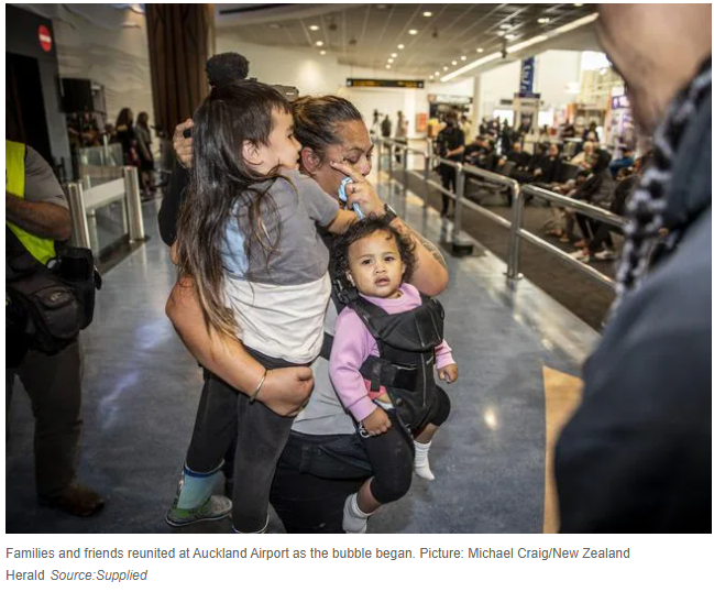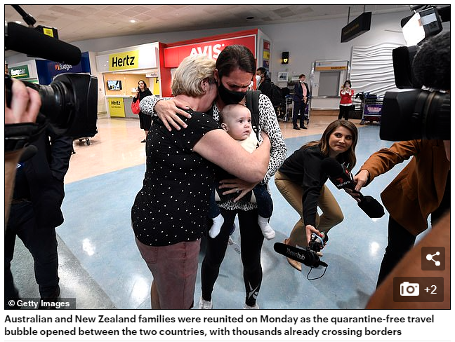 澳大利亚和新西兰的家庭在周一团聚,因为两国之间的无检疫旅行泡沫已经打开,成千上万的人已经越过边界。