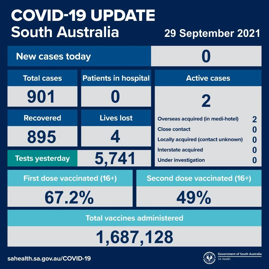 2021年9月29日,星期三,南澳新冠病例情况更新如下: