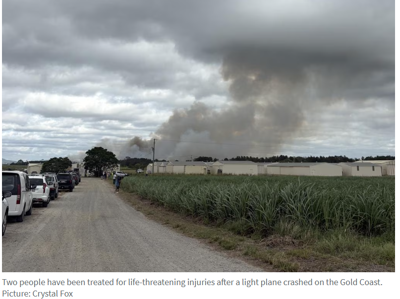 黄金海岸坠机事故致两人死亡,并引发丛林火灾!