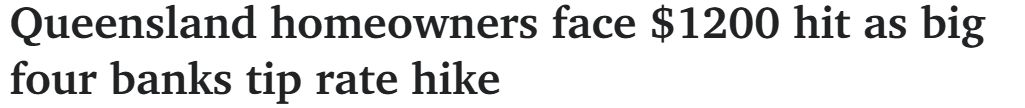 据《couriermail》1月29日报道,通胀数据促使各大银行预测澳央行将于下周加息,昆州房主面临每年超过1000澳元的房贷增长。