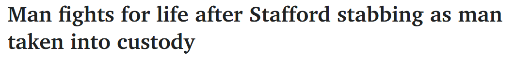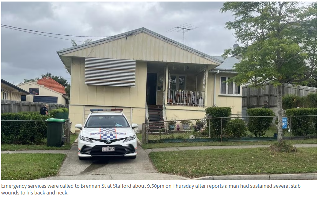周四晚9时50分许,紧急服务部门接报称Stafford区Brennan St一名男子背部及颈部多处被刺伤后赶赴现场。