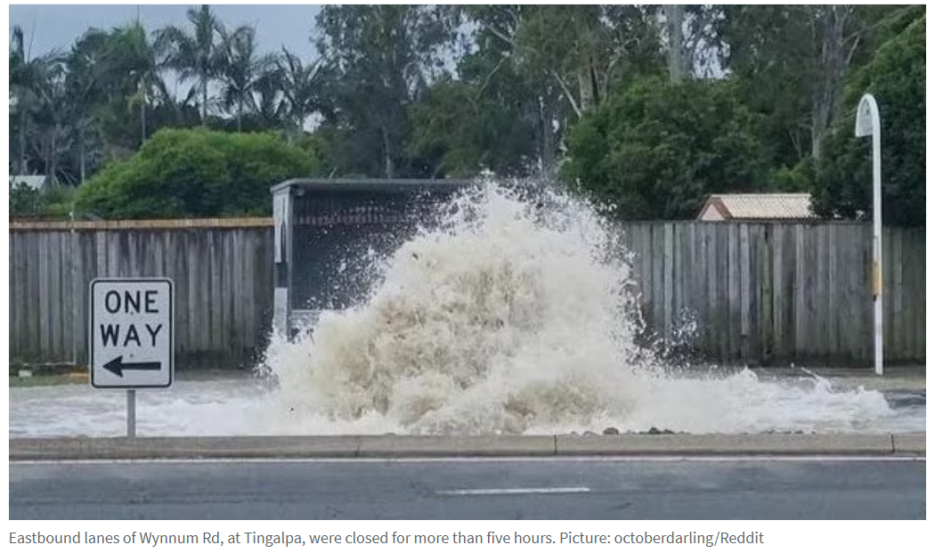 周一上午11时45分左右,Tingalpa区Wynnum Road靠近Hamilton Street路段发生事故,大量水流涌上路面并灌入民宅。