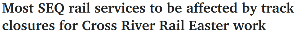 Cross River Rail复活节施工,昆州东南部大部分铁路服务受影响!