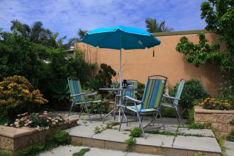 最近新添置的户外桌椅和伞