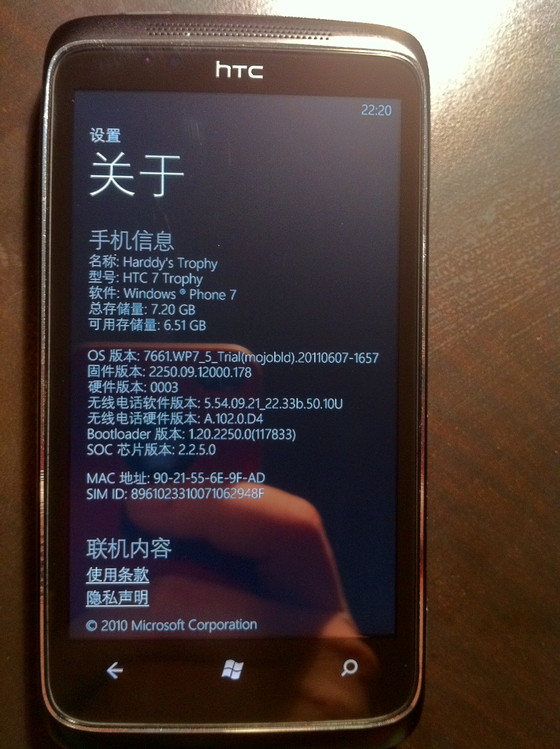 试出Macbook AIR 13’’和 HTC 7 Trophy WP7芒果beta2 中文