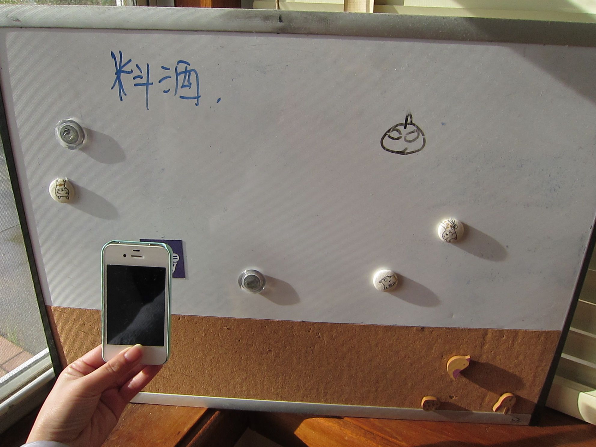 吸铁石白板,下面有木条