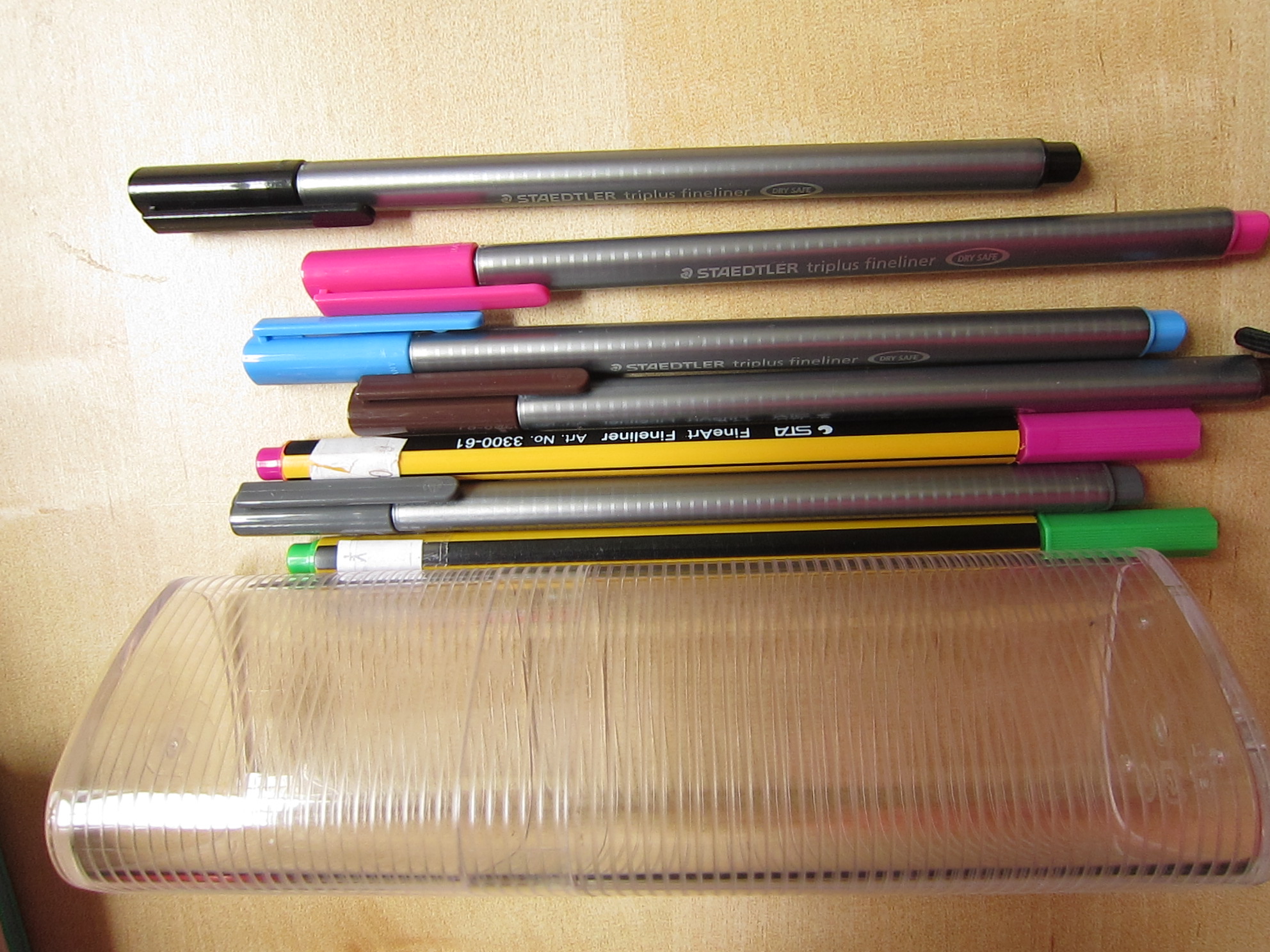 Unibook买的彩笔 细芯 质量非常好,买就送三角塑料袋那个笔筒 全部加起来 两刀