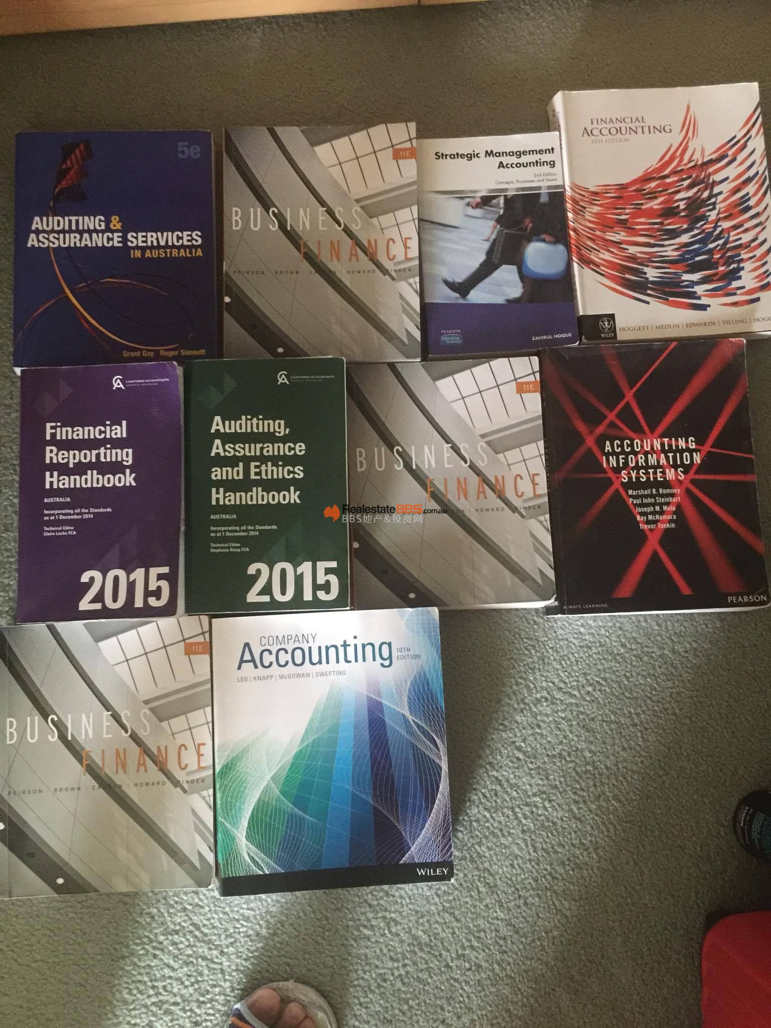 本帖最后由 c.long 于 7-3-2017 20:55 编辑 阿大会计专业二手教科书: 1. Auditing & Assurance Services 5e. Grant Gay, Roger Simnett. $ 20 2. Accounting Information Systems, (2013), 12th edition ...
