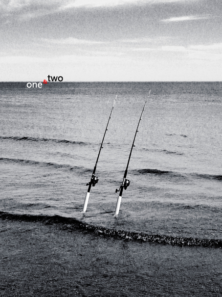 第一张,鱼竿在那个地方能钓着鱼吗?
