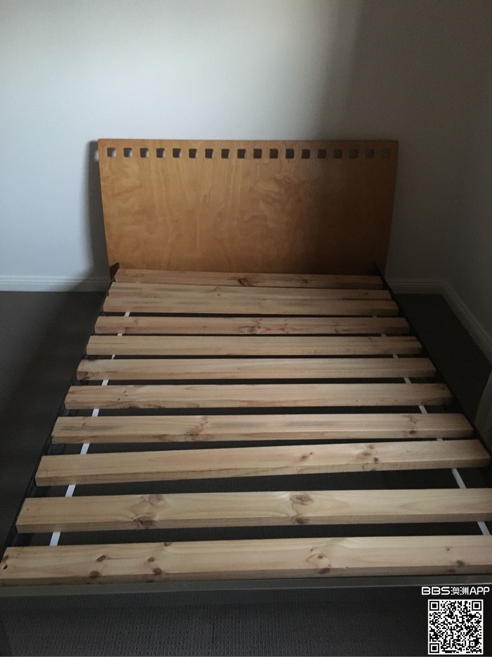 双人床,实木床头,钢床架,床垫1年新,没有任何污渍和破损,很舒适,$150, 5公里以内可包送。 0432668102