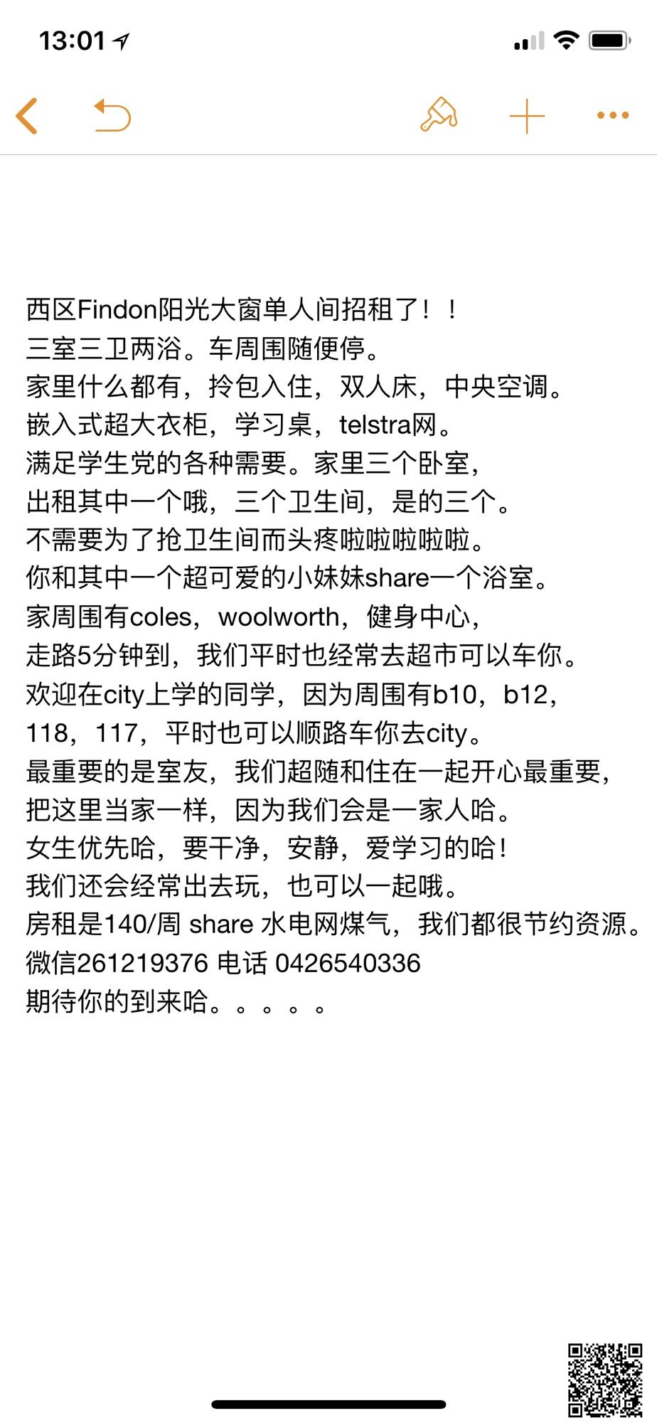 西区Findon有爱的阳光大窗大窗单人间招租啦。