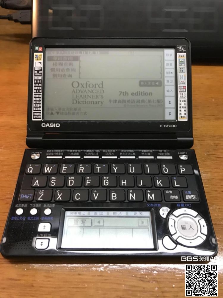 出售NAATI考试专用CASIO电子词典 型号E-SF200,9成新 内涵陆谷孙英汉大词典,牛津搭配词典,牛津高阶词典,牛津同义词词典,可发音,可手写。 售价200刀,有意者请扫二维码(请注明电子词典) ...