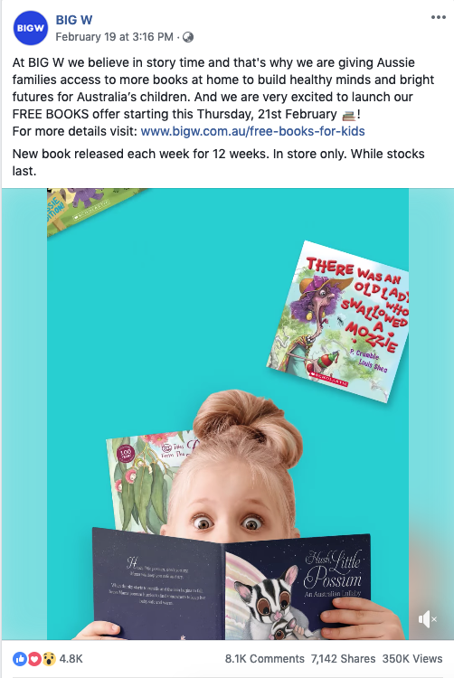 爸爸妈妈们注意了!! BIG W免费送优质儿童绘本图书了! 12周内将免费送出12个品种的共计约370万本儿童绘本! BIG W图书经理Meredith Drake表示,他们所选的书籍面向6个月至6岁的儿童,都非常适合大声朗读。 ...