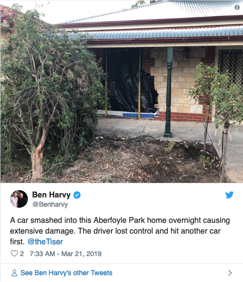 周三(3月20日)上午,一位阿德莱德的居民经历了一场飞来横祸。 一名司机开着失控的霍顿轿车,一头撞进了他位于 Aberfoyle Park 的家里,一面墙瞬间就没了! 真是人在家中坐,祸从天上来啊。 Gill说, ...