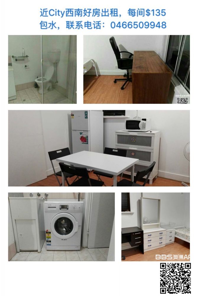 近city西南好房出租,每间$135,包水,联系电话:0466509948