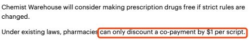 澳洲最大药房Chemist Warehouse要提供免费处方药? 近日,Chemist Warehouse提议,如果政府愿意改变法律的话,他们将考虑提供免费处方药! 根据社区药房协议,新药房不能设在现有药房1.5公里内。 Chemist W ...