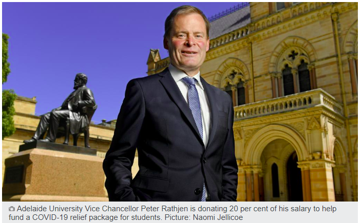 阿德莱德大学副校长Peter Rathjen和其团队将捐赠薪金的五分之一来支持阿大COVID-19学生补助项目。