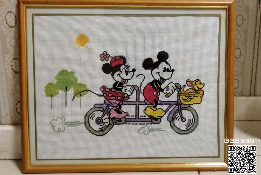 全新实木金边框装裱好的米奇老鼠十字绣一副 $180 尺寸:53*43CM 可自取或邮寄 电话:0403089716 WX:helenwang1234567