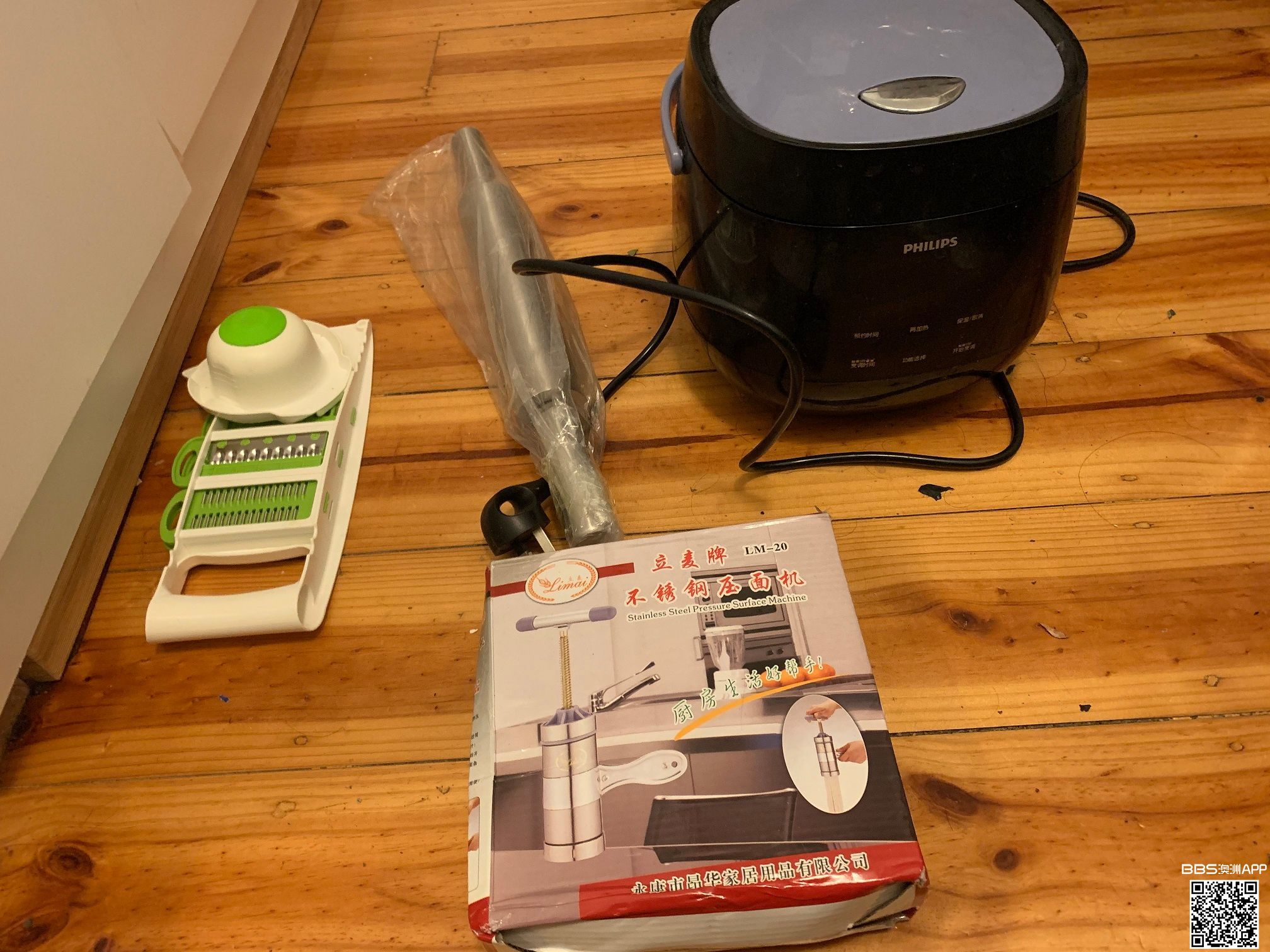 只要$30,不还价。 出电饭煲,免费送上门,送万能削菜切丝器,全新手工压面器,擀面杖,$30。 请短信联系: 0415766567 Blake.