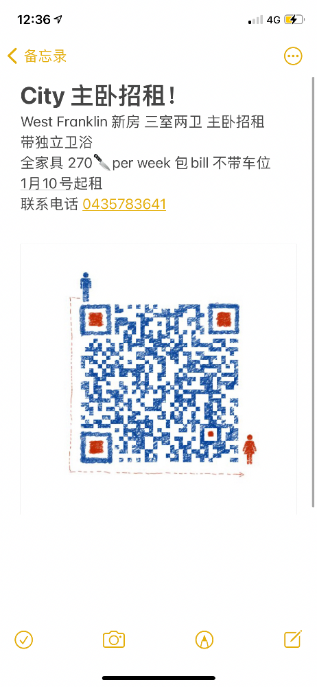 City 主卧招租! West Franklin 新房 三室两卫 主卧招租 带独立卫浴 全家具 270per week 包bill 不带车位 1月10号起租 联系电话 0435783641