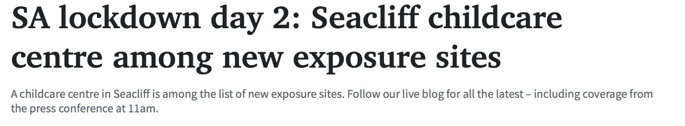 位于Seacliff的一个儿童保育中心也被列入新的疫情暴露场所名单中。 图文来源:The Advertiser 原文链接