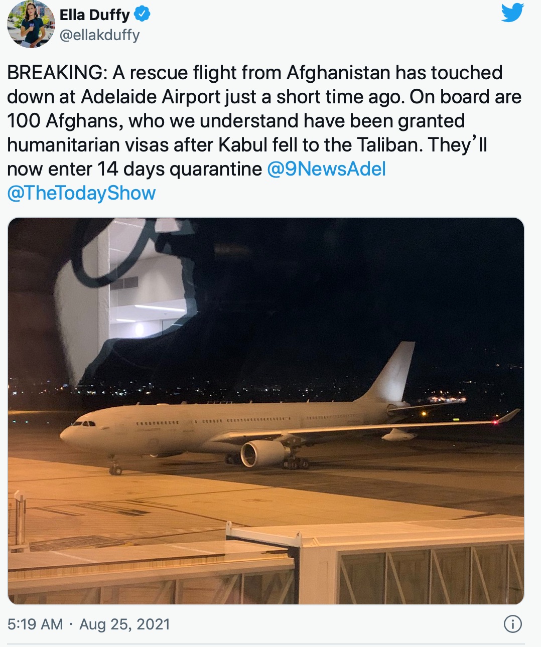 一架载有100名难民的阿富汗救援航班于周三上午在阿德莱德降落。 澳大利亚总理斯科特-莫里森证实,澳大利亚和新西兰公民以及持有签证的阿富汗国民被五架航班带离阿首都。 莫里森先生说:"我们让很多新西兰 ...