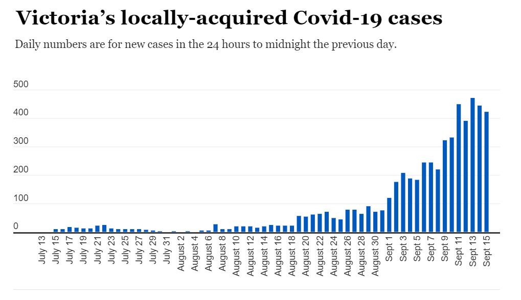 随着病毒在 north and western suburbs[北部和西部郊区]的迅速蔓延,维多利亚州在周三记录了423起新的本地获得的Covid-19感染。 卫生部门在上午9点左右确认了新的本地病例,同时还宣布了两个新的死亡病例。 在最新 ...