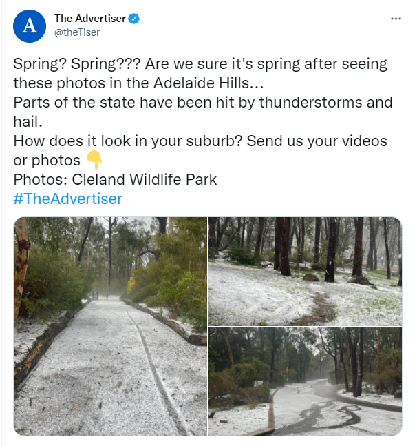 今天,恶劣天气袭击着阿德莱德! 建议前往Hills地区的驾驶者根据情况谨慎驾驶。 提醒:将你的车移到车库或远离树木固定好松散的户外物品带雨伞,小心倒下的树木和电源线寻求庇护,最好是在室内,不要在 ...