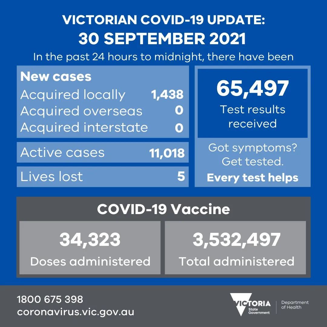 维多利亚州已经记录了1438个新的当地获得的Covid-19感染,又是一个每日记录,因为卫生当局警告说该州还没有达到爆发的高峰。还有五个新的死亡病例 这使得因Covid-19而丧生的维多利亚州人的人数达到861人。 他 ...