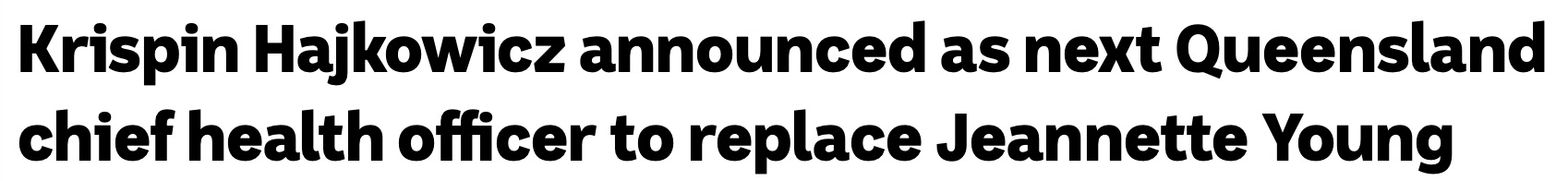 传染病专家Krispin Hajkowicz被宣布为昆士兰的下一任首席卫生官。 "Young是出色的,杰出的,得到了所有医生的尊重,得到了所有照顾该州COVID的护士们的尊重。" 他说,能够为昆士兰的人民服务,他真的感 ...
