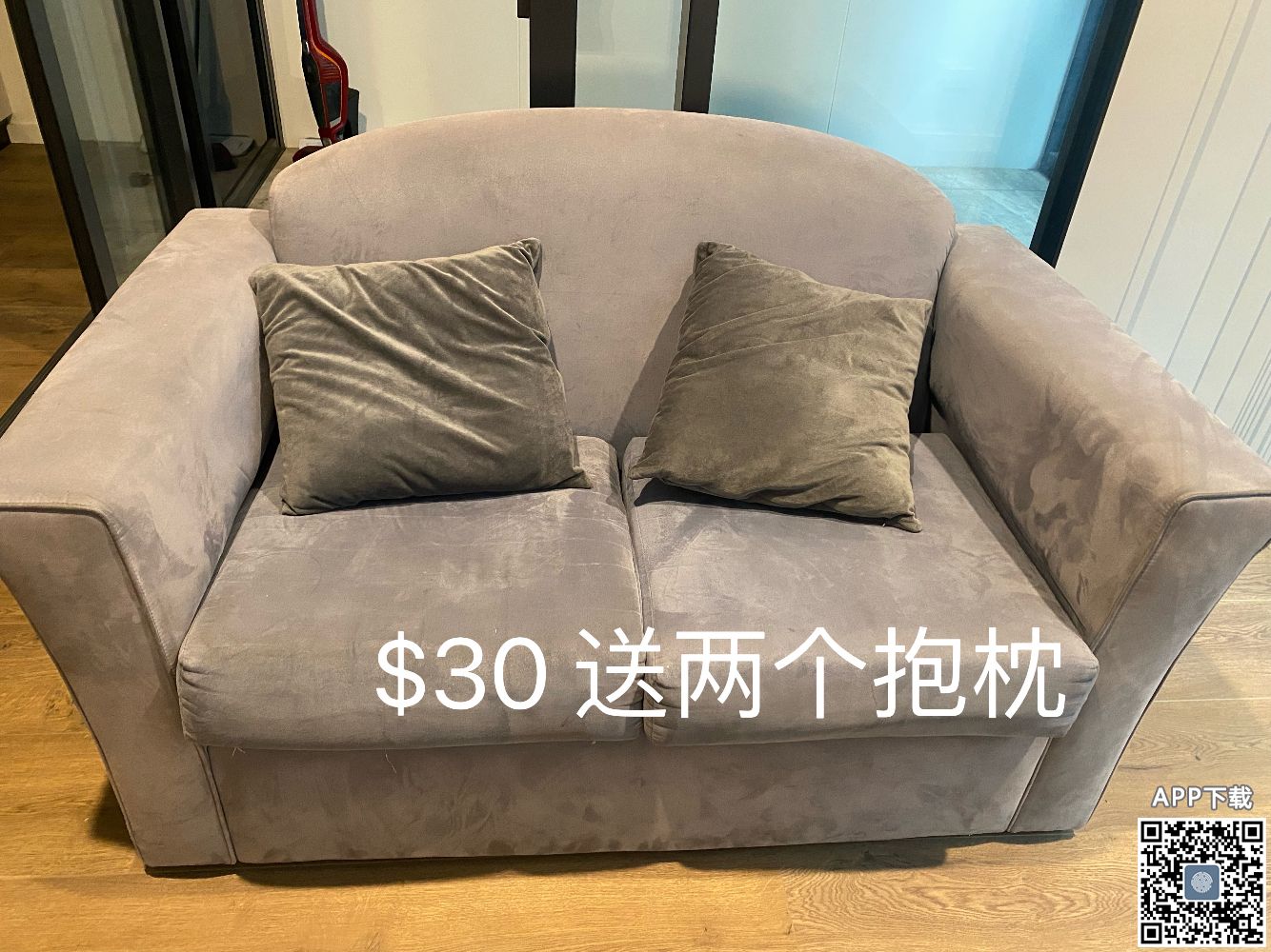 两人坐沙发$30 送抱枕X2 1.28周五前City自取。短信0449249210