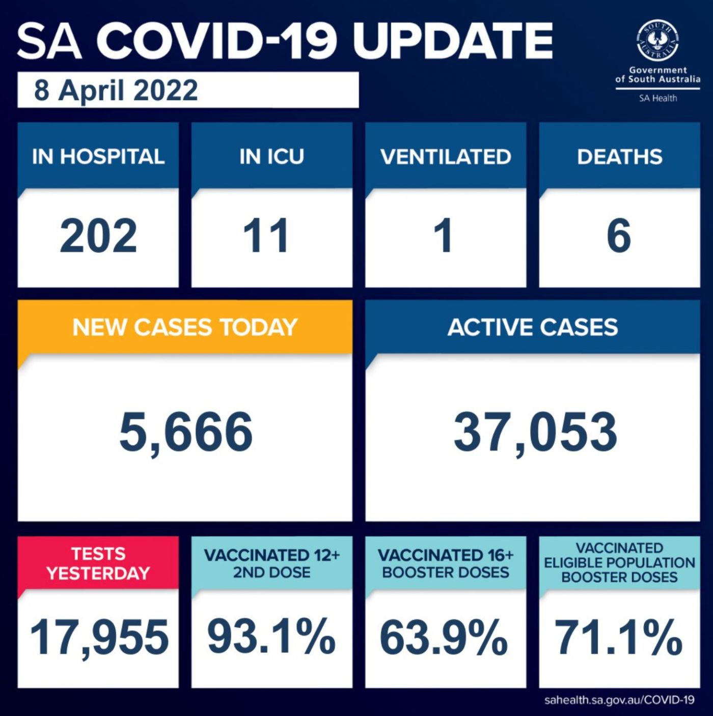 在过去的24小时里,南澳新增5666例确诊病例,6人死亡! 目前有37,053个活跃病例。 南澳卫生部证实,有6人死亡,分别是一名80多岁的妇女、一名90多岁的妇女、两名60多岁的男子、一名70多岁的男子和一名80多岁 ...