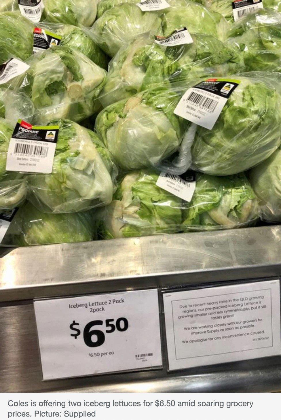 最近,生菜价格已经飙升,昆州和新州发生洪水之后,这种绿叶蔬菜目前供不应求。 Coles农产品总经理Craig Taylor表示,超市正在与种植者密切合作,帮助他们尽快恢复过来。 “虽然Coles有大量的新鲜水果和 ...