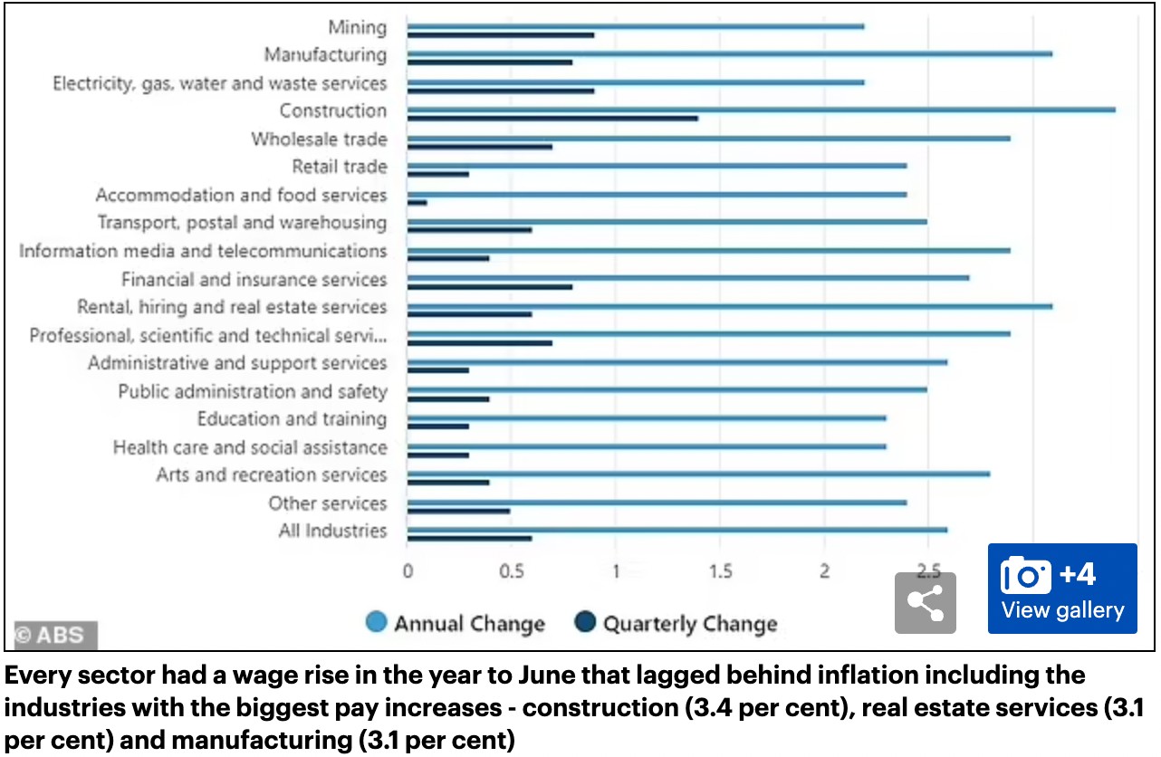 澳洲每个行业的工资都落后于飞涨的生活成本,年收入低于92,000澳元的澳大利亚人现在被正式视为穷人。 尽管建筑业的工资增幅最高,但仍低于平均水平,平均工资为91,062澳元。 房地产行业的平均工资为83,387 ...