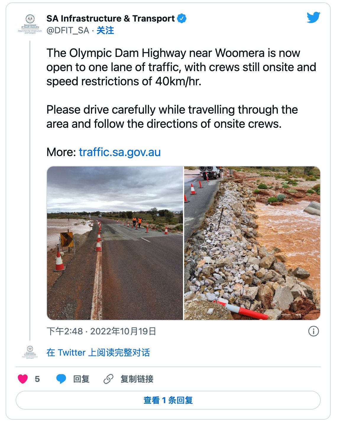 南澳北部发生洪水后,道路已重新开放,但随着强降雨的即将到来,人们担心最坏的情况还在后面。 “集水区的水位很高,本周末,可能发生大洪水。” 图文来源:The Advertiser 原文链接: