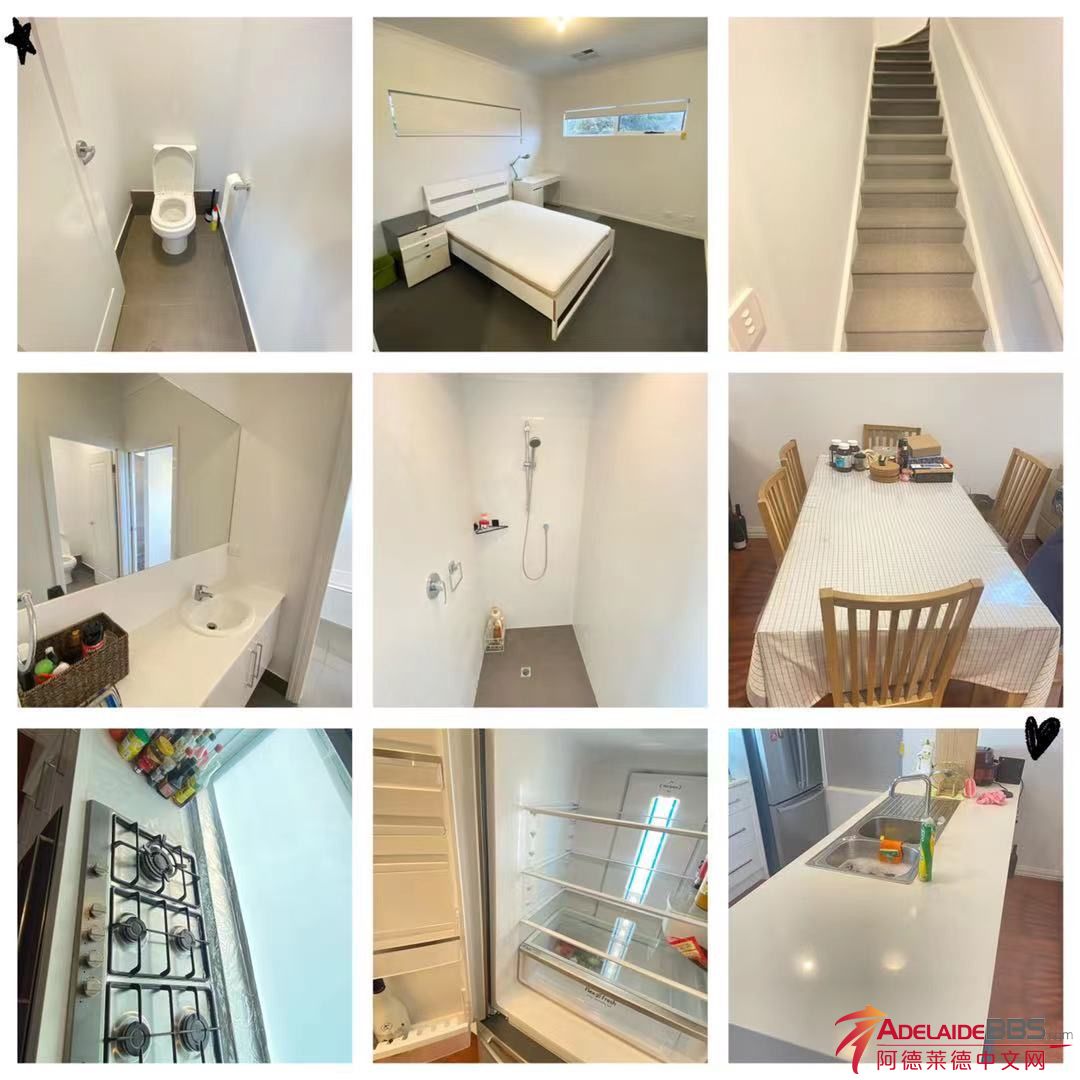 阿德莱德东北Tranmere区新房Townhouse次卧招租 ✨房间信息:虽说是次卧,但享受主卧待遇,含double size 床 嵌入式衣柜,床头柜,学习桌等家具家电齐全,拎包入住,干湿分离卫浴(含浴缸)供您自己单人使用无 ...