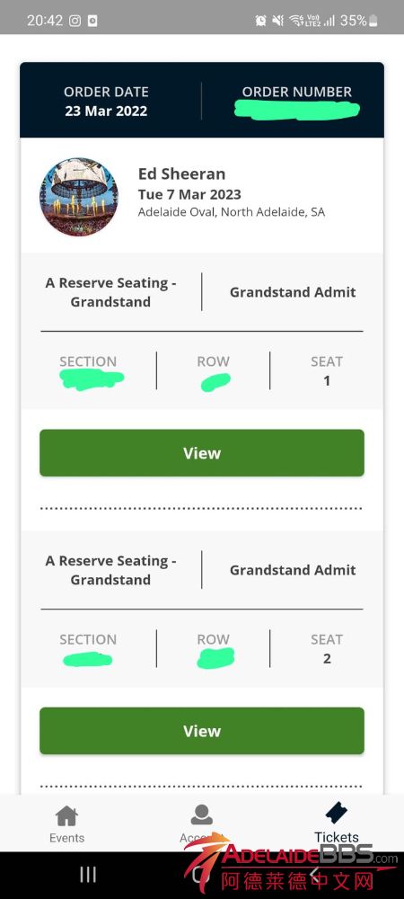你好,任何尋找阿德莱德 Ed Sheeran 演唱会的门票我還有 2 張門票可供出售!!!如果您有興趣購買,請給我留言....謝謝