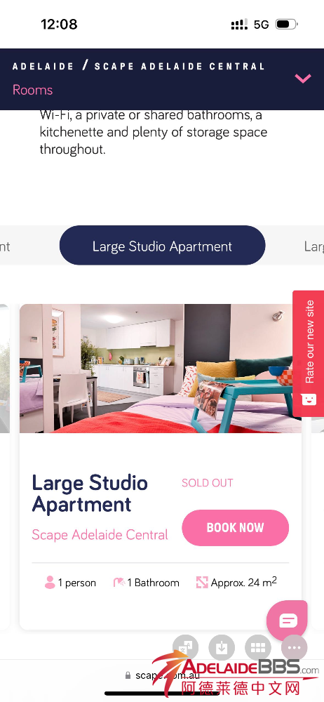scape adelaide city 最高等级房型large studio 全scape只有四间 原价650 per week 本人后天回国故短租出去三周 430per week 全包
