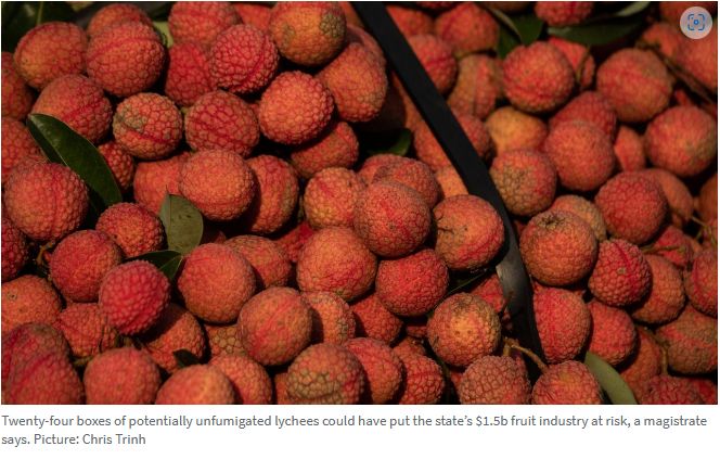 南澳GT Produce公司因运送24箱含有果蝇风险的荔枝而被定罪和处罚,这批荔枝使南澳价值15亿澳元的园艺产业面临果蝇风险。 荔枝是一种亚热带水果,生长在昆士兰热带和中部地区以及新州北部。该公司的律师请求 ...