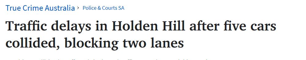 南澳五车相撞,车道堵塞,交通延误! 周三上午,一起多车相撞事故导致Holden Hill往市区方向的交通严重延误。 目前尚无五辆涉事车辆乘客受伤的报告。 图文来源:The Advertiser原文链接