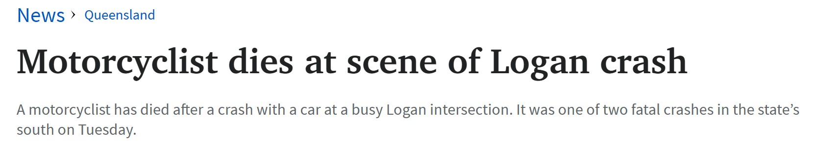 据悉,周二一名摩托车手在Logan一十字路口与一辆汽车相撞后死亡。 车上的另外两名病人因轻伤接受了治疗。 警方关闭了十字路口 Teviot Rd 和 Scott Lane 的两个方向。 法医碰撞小组正在进行调查。任何人如 ...