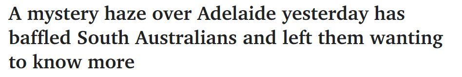 周六,阿德上空的神秘烟雾霾让人们感到困惑,纷纷在社交媒体上议论起来。有人将雾霾归咎于燃烧产生的烟雾,看看到底是什么造成了雾霾。 高级气象学家Mark Anolak能够解释这种神秘的雾霾,他说是 "弱 ...