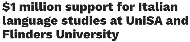 据悉,南澳政府已承诺出资100万澳元支持南澳未来的意大利语学习,南澳大学和弗林德斯大学将在未来三年内获得资助。该合作伙伴关系旨在加强和扩大意大利语项目,这对全州的学术发展和文化交流至关重要。 在南 ...
