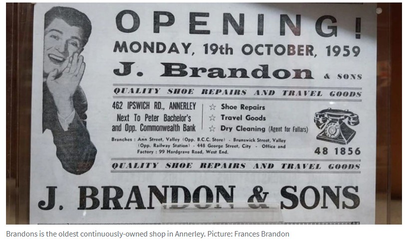 据悉,布里斯班Annerley一个家族经营了100年的企业即将关闭。好消息是,本周将有清仓大甩卖。 由Joe Brandon于1924年创办Brandons Shoe Repairs)将于今年年底关闭。 Fat Comics的店主Norm Bardell表示, ...